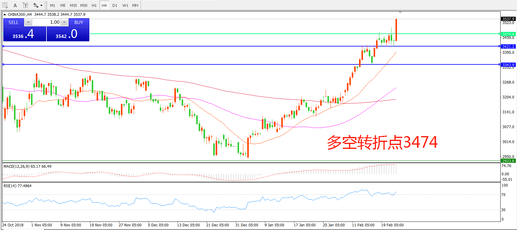 多空转折点:3474.00