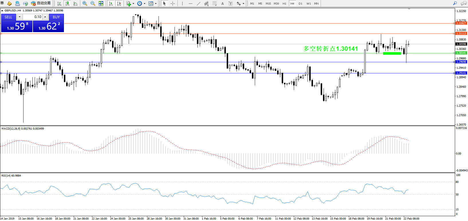 交易策略:1.30141上方看涨,目标1.31113、1.31627