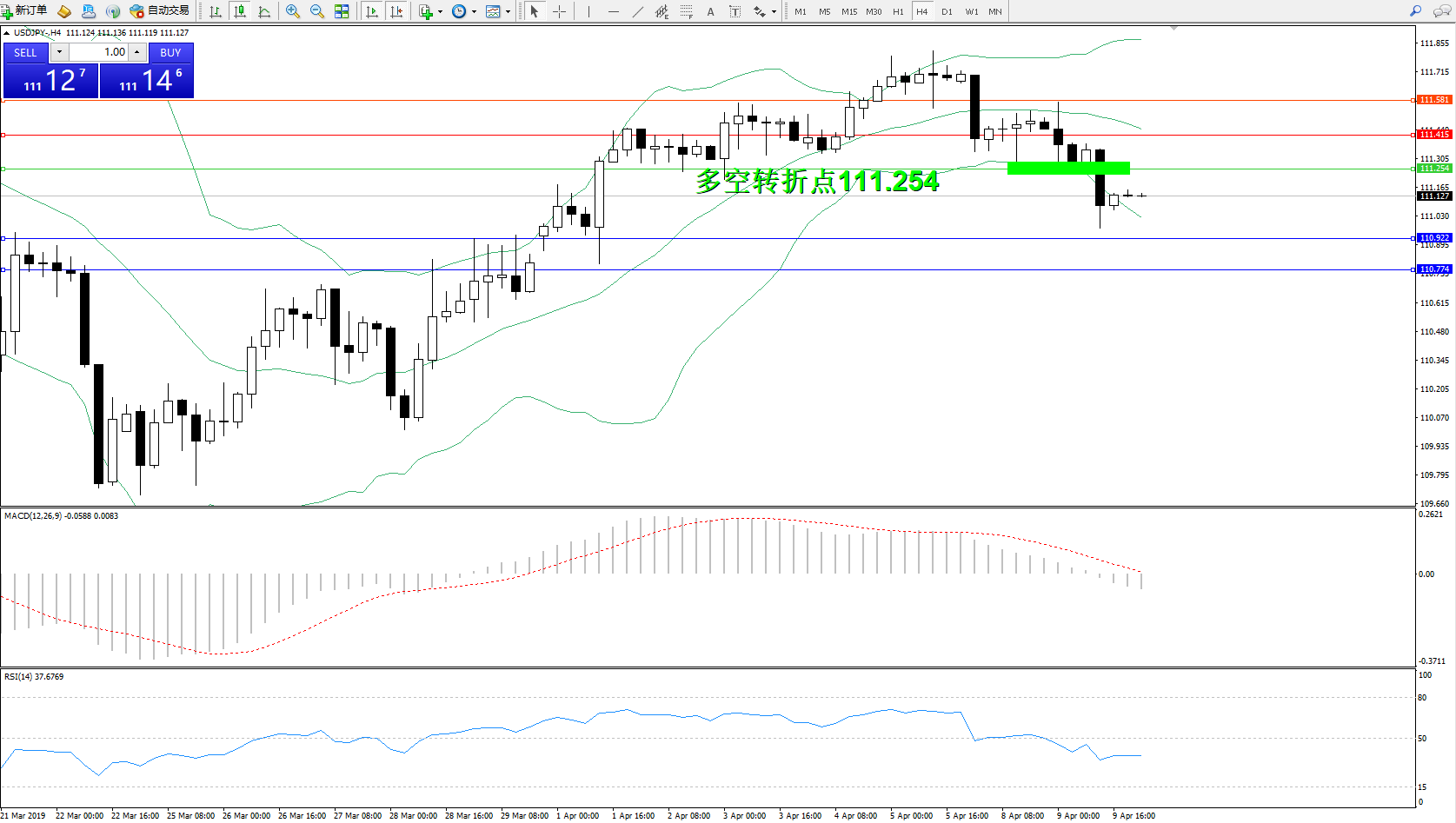 交易策略:111.254下方看跌,目标110.922、110.774