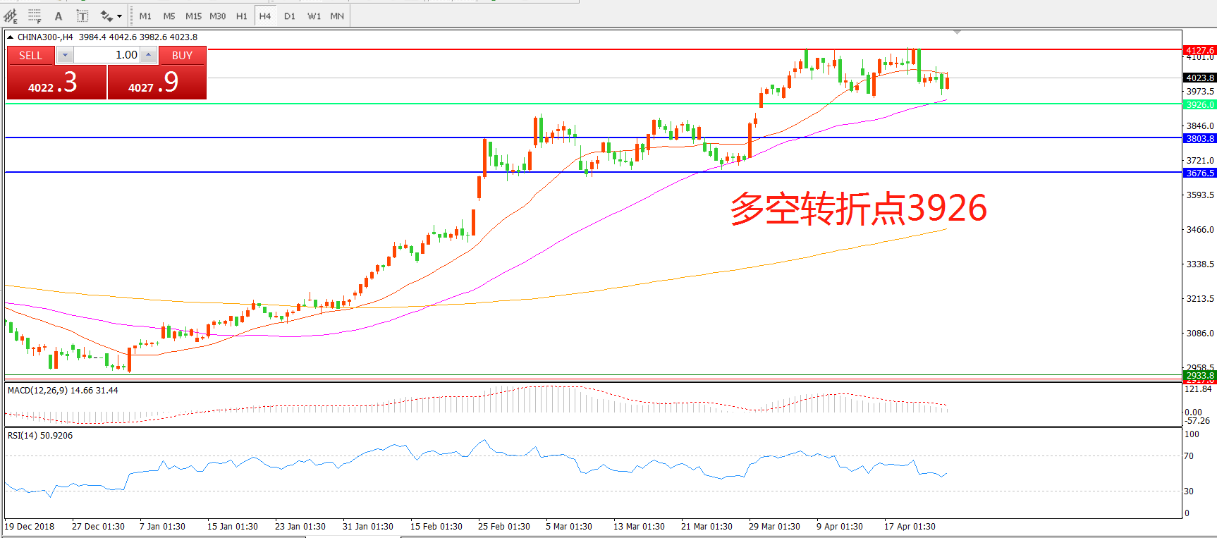 4小时图看,中华指数第三次靠近上方阻力长阴下行,显示上方阻力较强,21周期均线被跌破。MACD红柱减少,RSI指标拐头向上,短期可能迎来调整。
