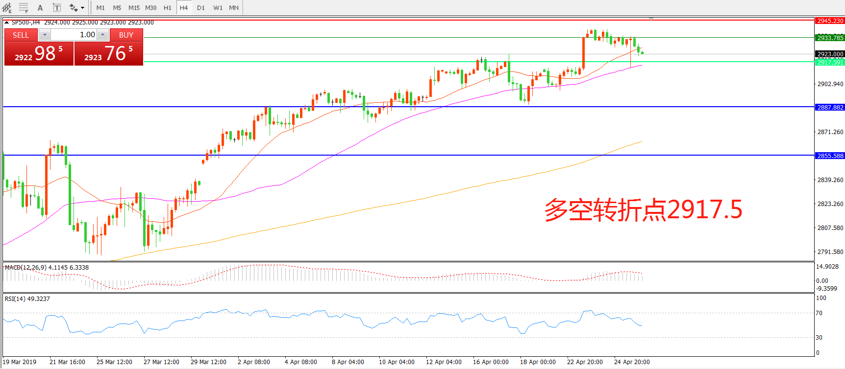 多空转折点:2917.50