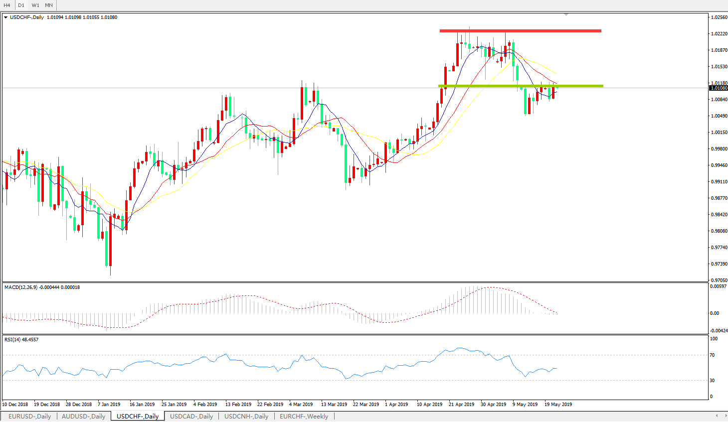 美元兑瑞郎USDCHF 日线图: