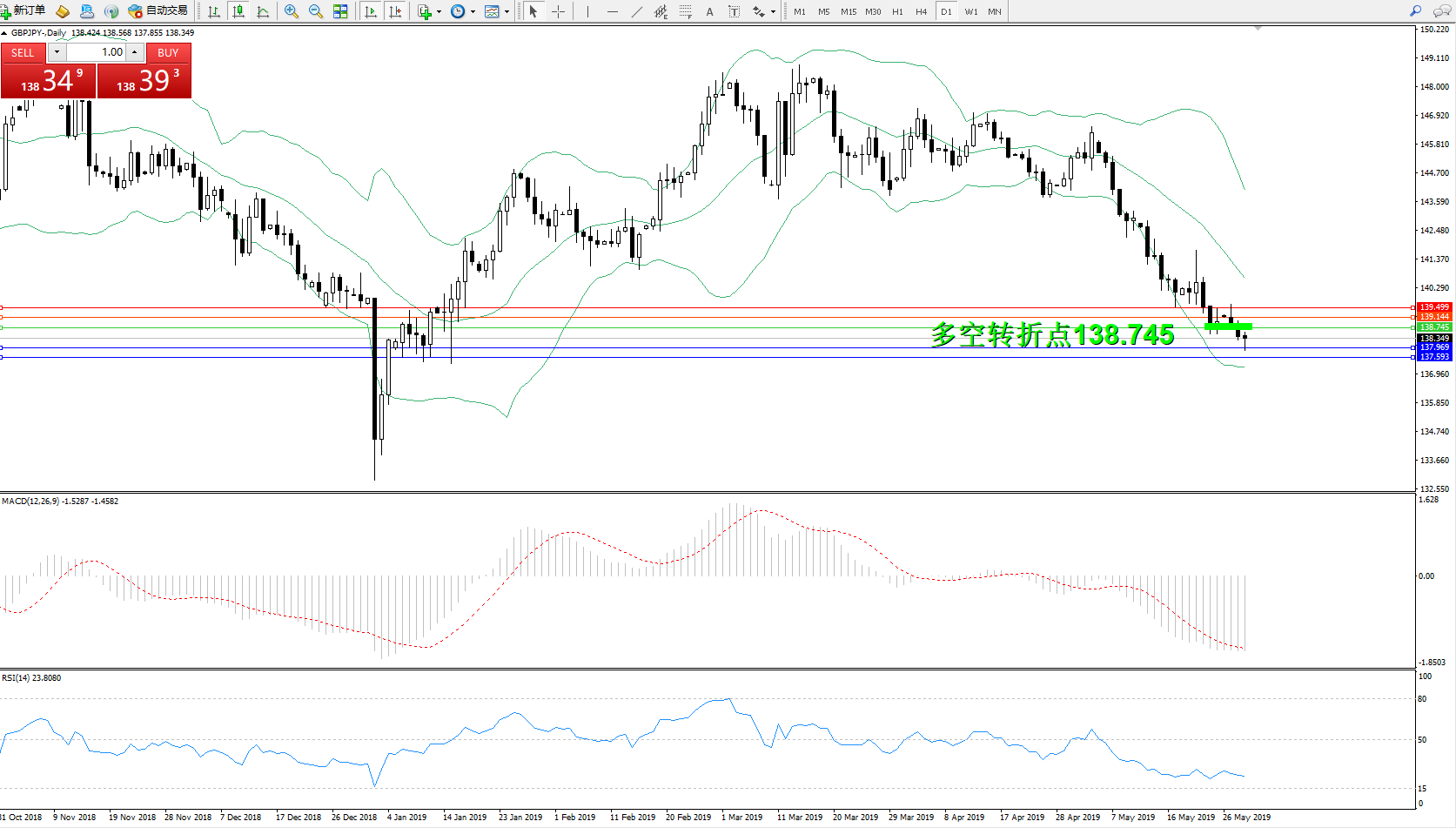 交易策略:138.745下方看跌,目标137.969137.593