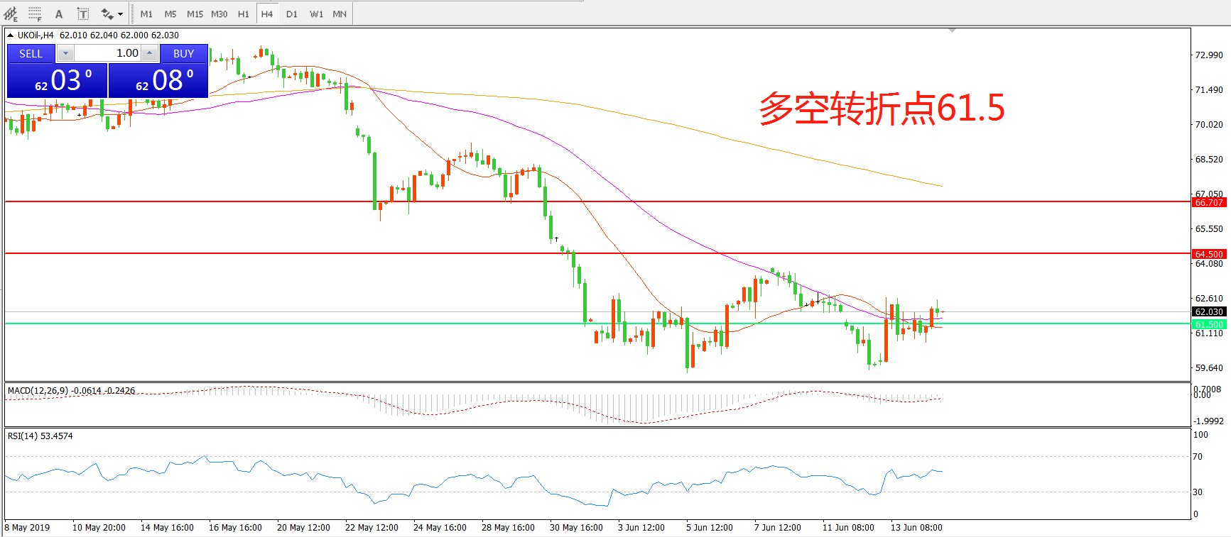 多空转折点:61.50