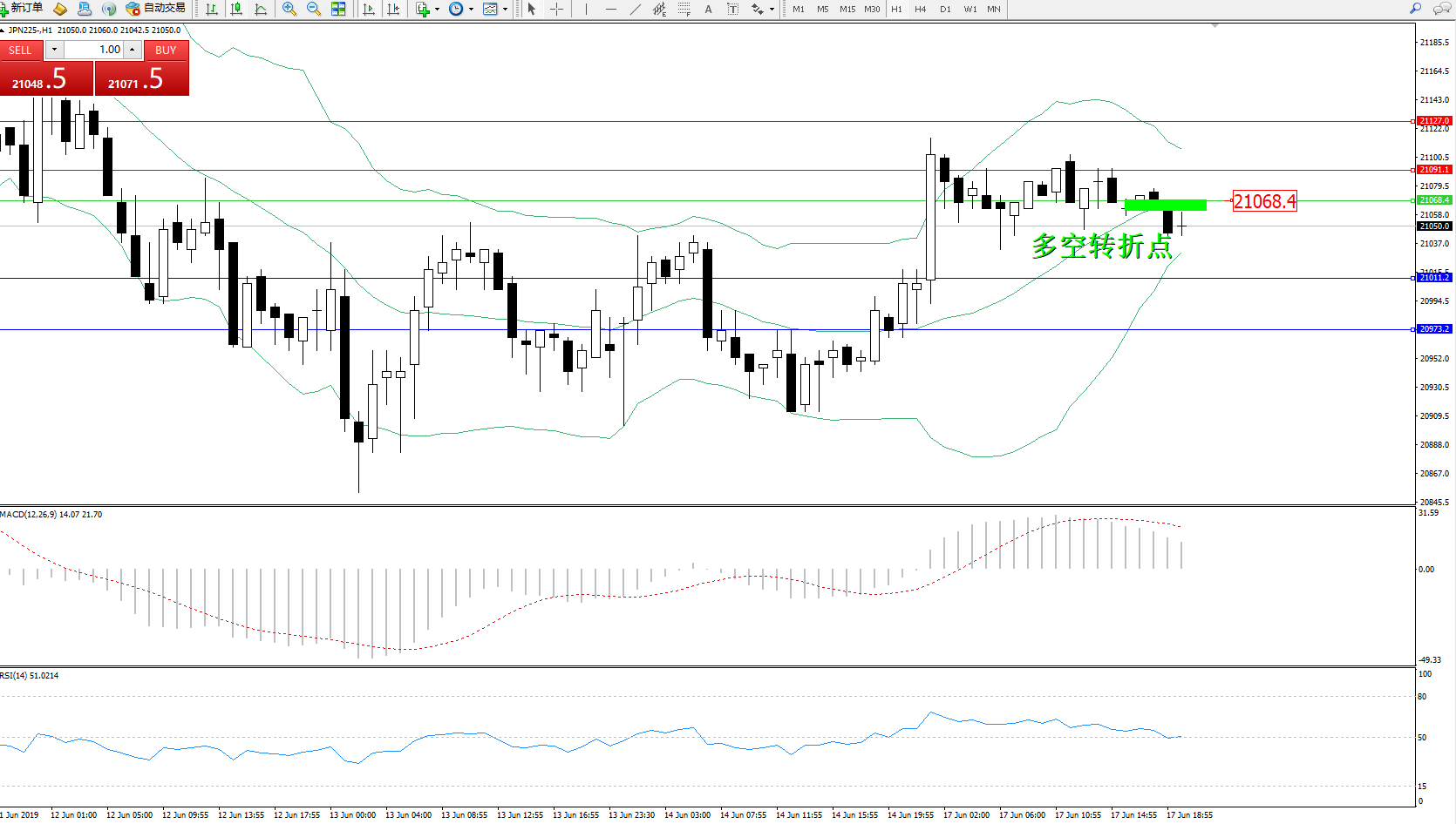 日经225指数617日(周一)收盘上涨14.61点,涨幅0.07%,报21131.50点。造纸业和纸浆、铁路和客车和房地产等上涨的板块带领股指走高。日本短期国债价格下滑,追随美债跌势,在美联储利率决议和日本央行政策决议公布前,市场整体较为低迷。预计日本央行本周将保持其宽松计划不变,同时如果贸易等风险对国内温和扩张的经济构成威胁,日本央行预计将准备加大对货币政策的支持力度。日本央行亦将于周三、四举行货币政策会议,周四公布结果,大华银行预期将维持利率政策不变,将重申将在较长一段时间内,保持目前极低水平的短期及长期利率,至少到2020年春季前后。