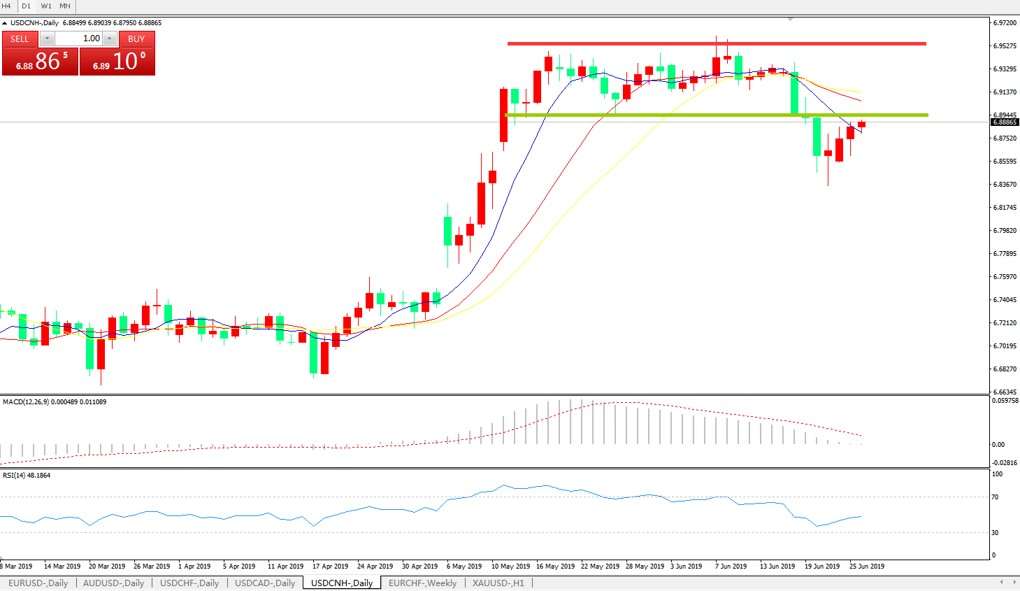 备选策略: 6.8880之上,看涨,目标价位为6.9600,然后为6.9800