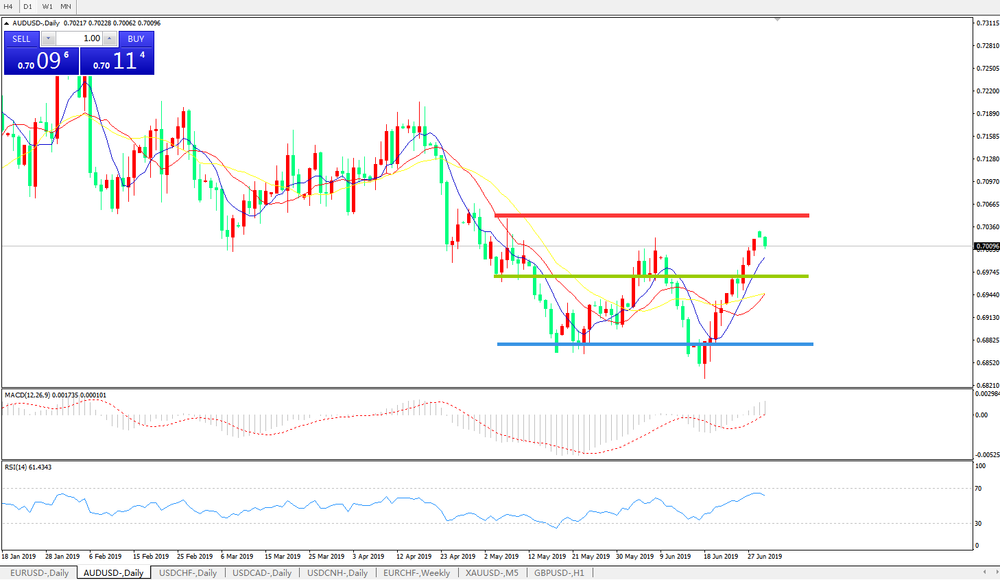 交易策略:0.6960上方看涨,目标0.70200.7100