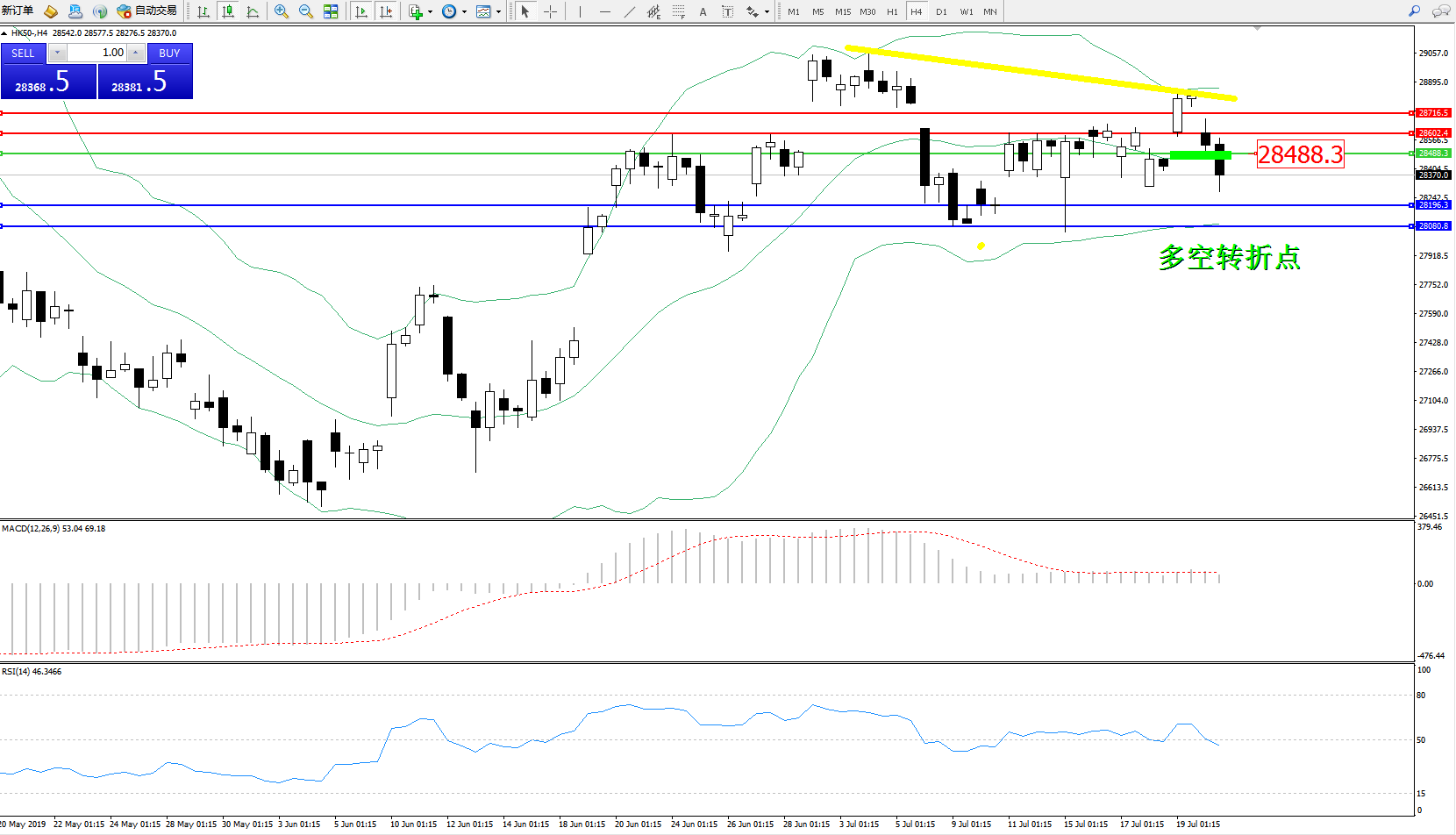 恒指HK50 ——4小时K线图显示: