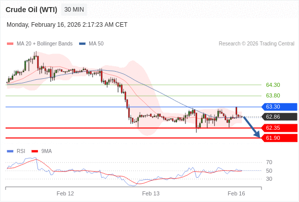 在 63.30 之下,看跌,目标价位为 62.35 ,然后为 61.90 。