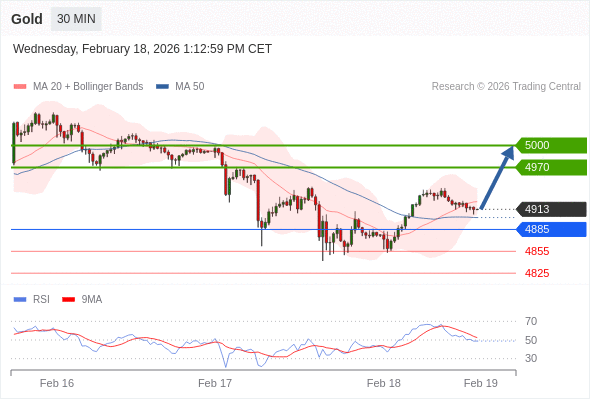 在 4885 之上,看涨,目标价位为 4970 ,然后为 5000 。