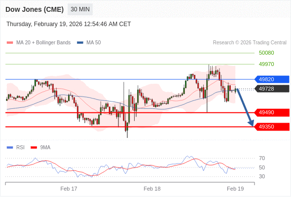 在 49820 之下,看跌,目标价位为 49490 ,然后为 49350 。