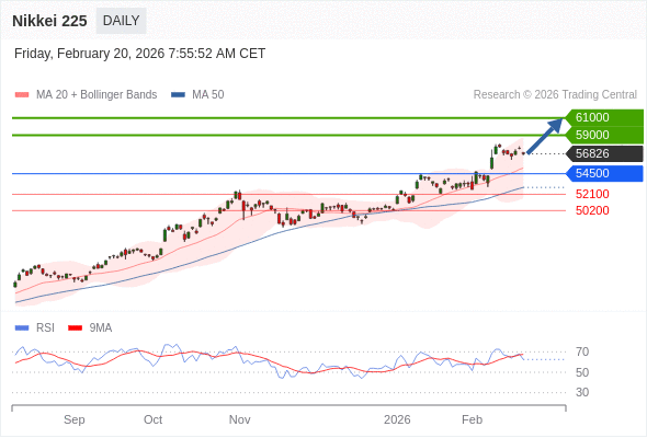 Nikkei 225 短线: 在54500之上,看涨。
