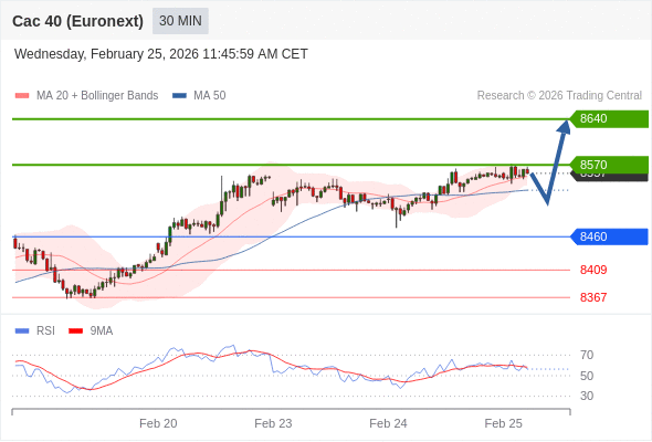 法国CAC指数期货 (Euronext) (H6) 当日内: 期待8570。