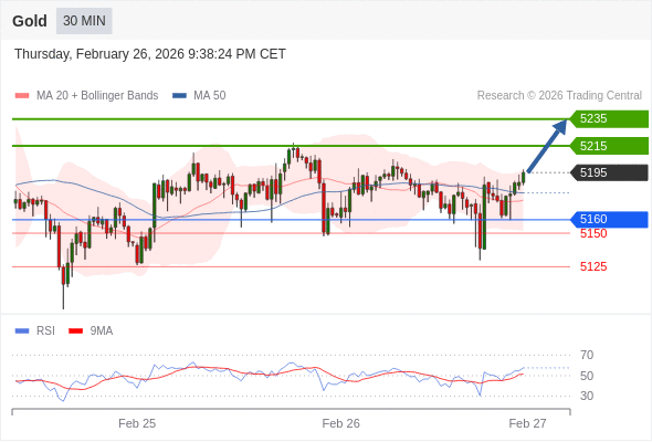 在 5160 之上,看涨,目标价位为 5215 ,然后为 5235 。