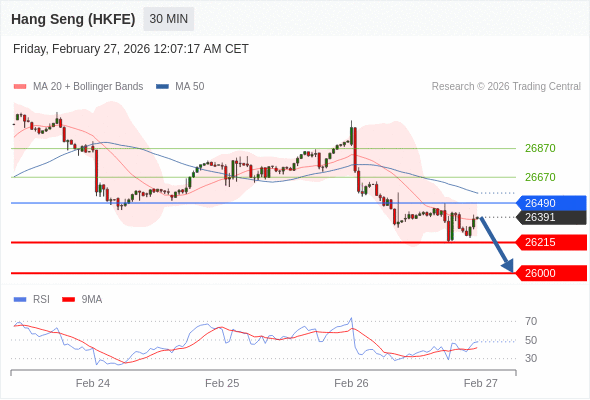香港恒生指数期货 当日内: 短期关键阻力位在26490。