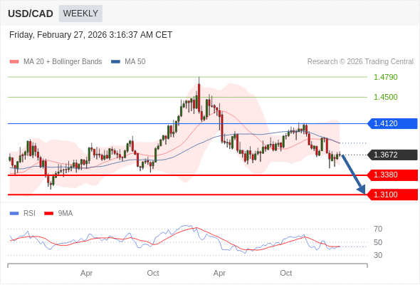 交易策略: 在 1.4120 之下,看跌,目标价位为 1.3380 ,然后为 1.3100 。