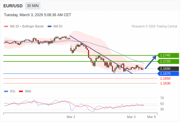 交易策略: 在 1.1670 之上,看涨,目标价位为 1.1720 ,然后为 1.1745 。