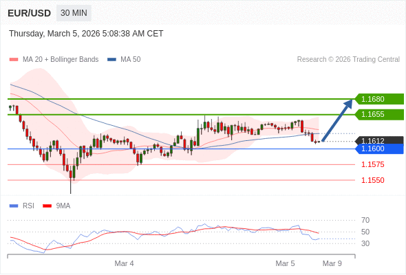 交易策略: 在 1.1600 之上,看涨,目标价位为 1.1655 ,然后为 1.1680 。