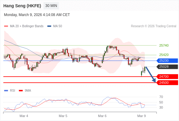 香港恒生指数期货 当日内: 目标位为24700。
