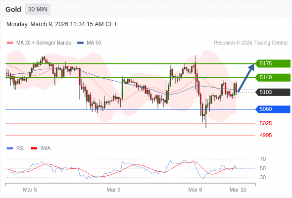 在 5060 之上,看涨,目标价位为 5140 ,然后为 5175 。