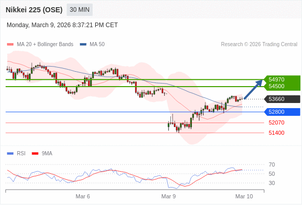 在 52800 之上,看涨,目标价位为 54500 ,然后为 54970 。