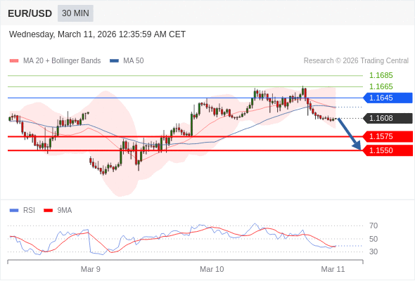 在 1.1645 之下,看跌,目标价位为 1.1575 ,然后为 1.1550 。