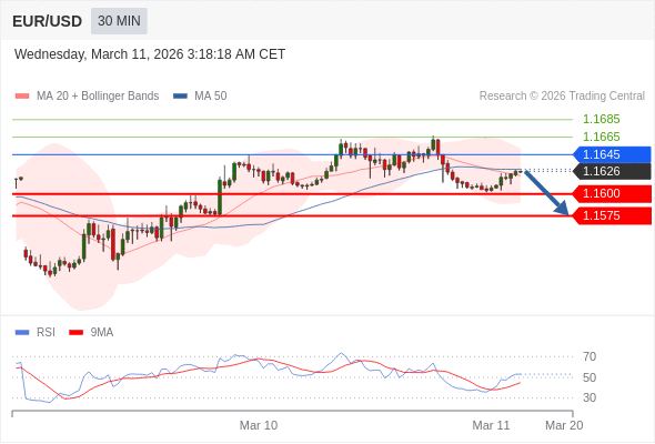 交易策略: 在 1.1645 之下,看跌,目标价位为 1.1600 ,然后为 1.1575 。