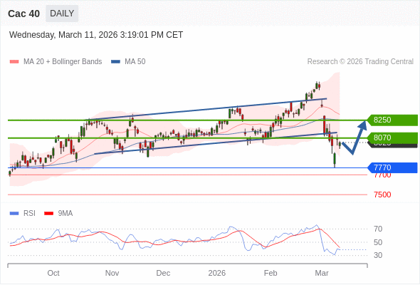 Cac 40 短线: 没有明显变化趋势。