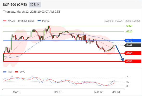 在 6770 之下,看跌,目标价位为 6700 ,然后为 6655 。