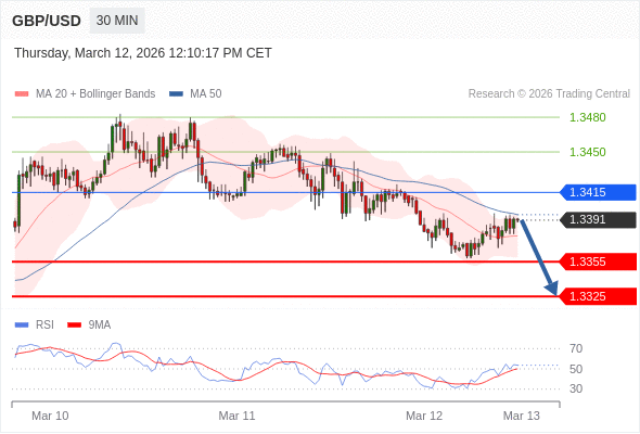 在 1.3415 之下,看跌,目标价位为 1.3355 ,然后为 1.3325 。
