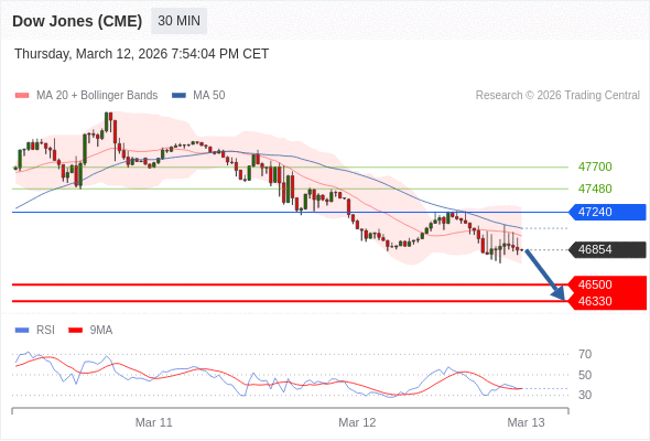 在 47240 之下,看跌,目标价位为 46500 ,然后为 46330 。