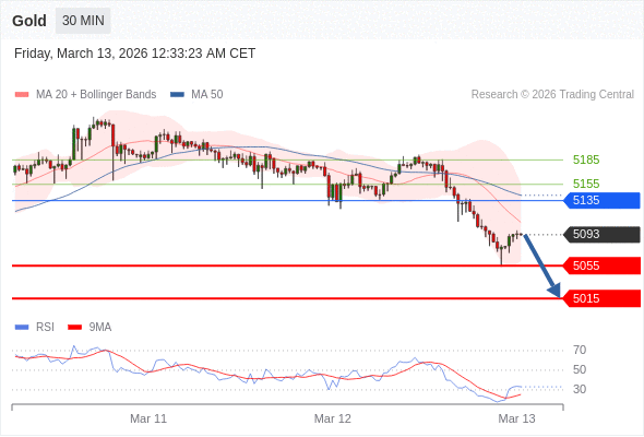 在 5135 之下,看跌,目标价位为 5055 ,然后为 5015 。