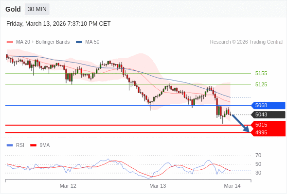 在 5068 之下,看跌,目标价位为 5015 ,然后为 4995 。