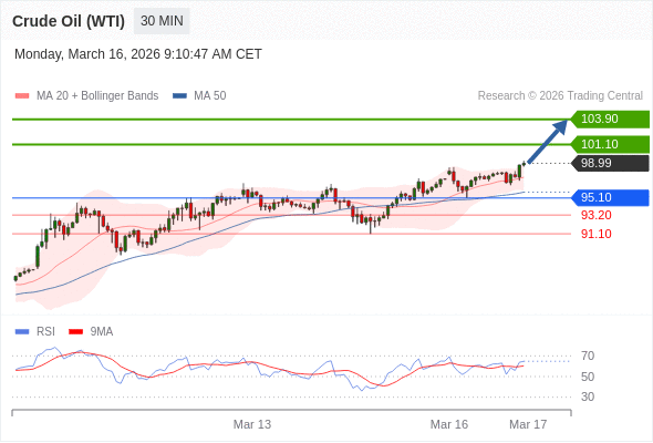 交易策略: 在 95.10 之上,看涨,目标价位为 101.10 ,然后为 103.90 。