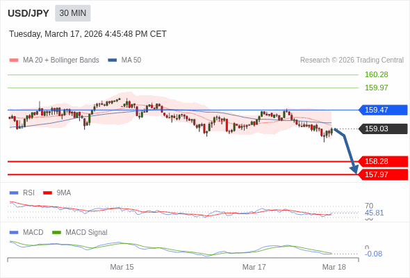 美元/日元 当日内 : 看跌,在 159.47 之下。