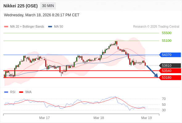 在 54370 之下,看跌,目标价位为 53540 ,然后为 53180 。