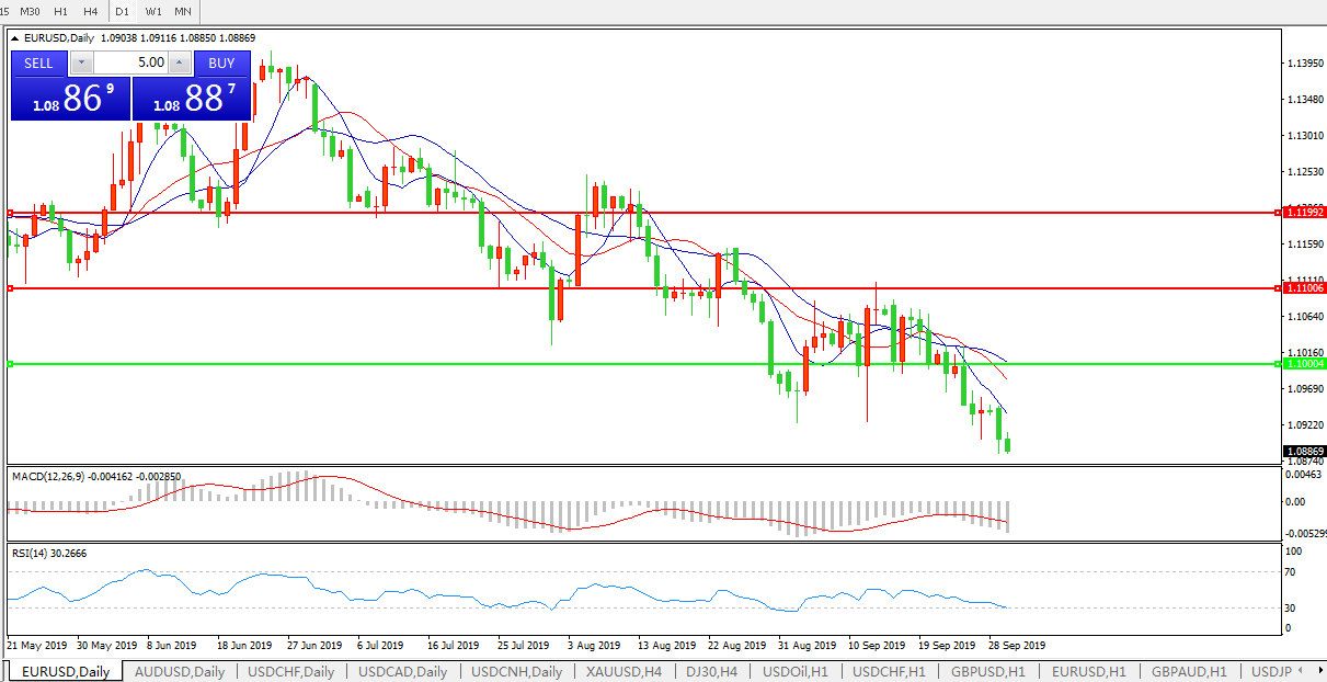 交易策略:1.1000下方看跌,目标1.0800、1.0600