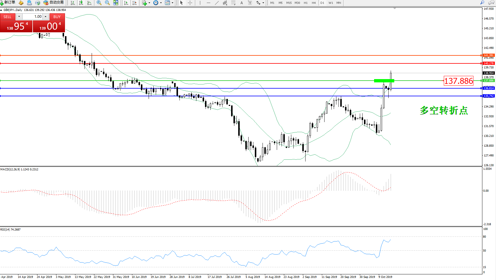 交易策略:137.886上方看涨,目标140.278141.391