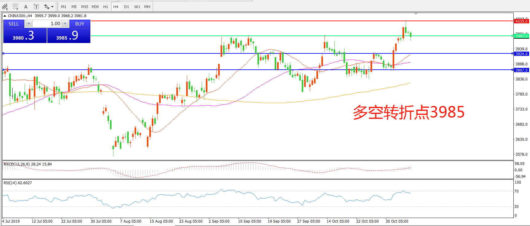 多空转折点:3985.00