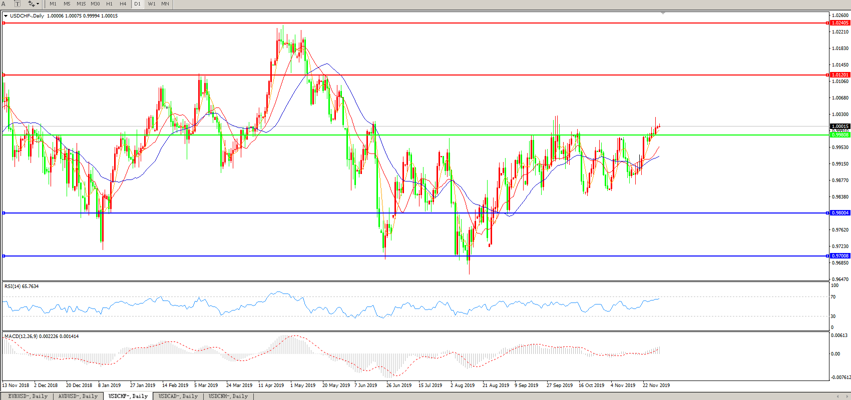 美元兑瑞郎USDCHF 日线图: