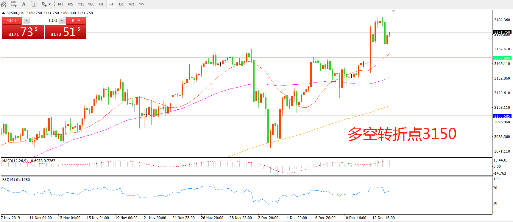 多空转折点:3150.00