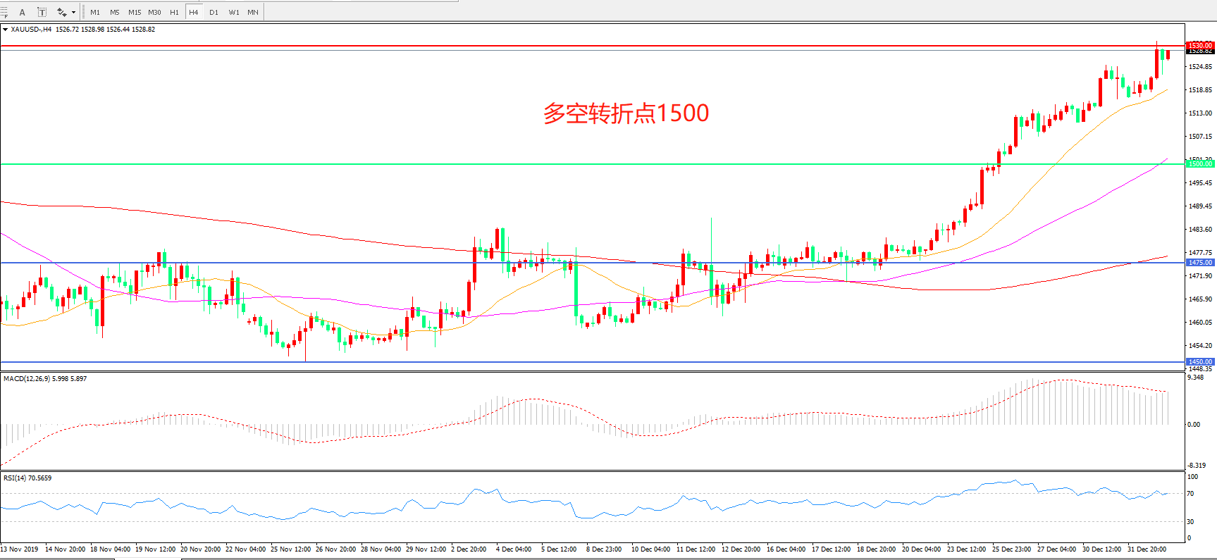 交易策略:在1500.00之上看涨,目标1530.00 1575.00