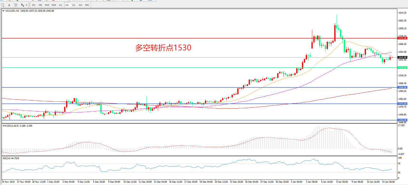 多空转折点:1530.00