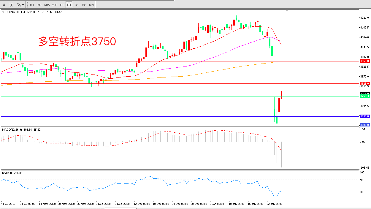 备选策略:在3750之下看跌,目标3630.00     3580.00