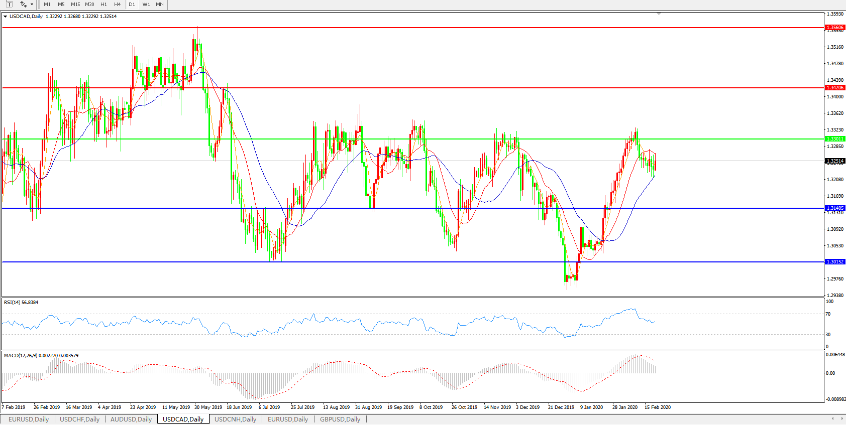 美元兑加元USDCAD 日线图: