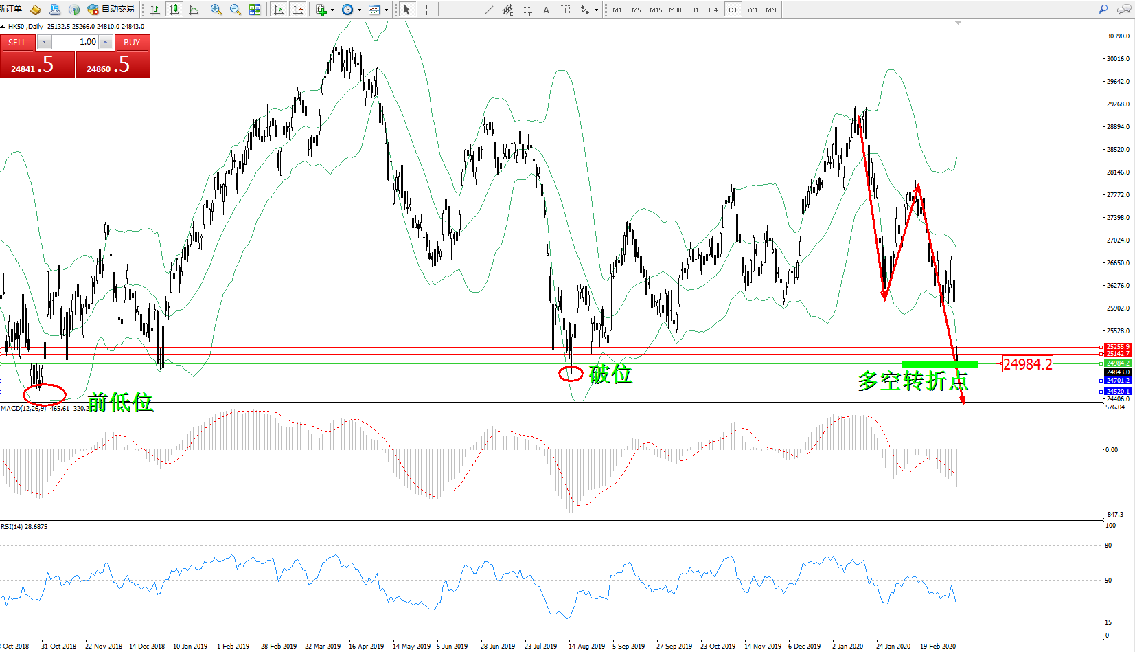 交易策略:24984下方看跌,目标24701、24520