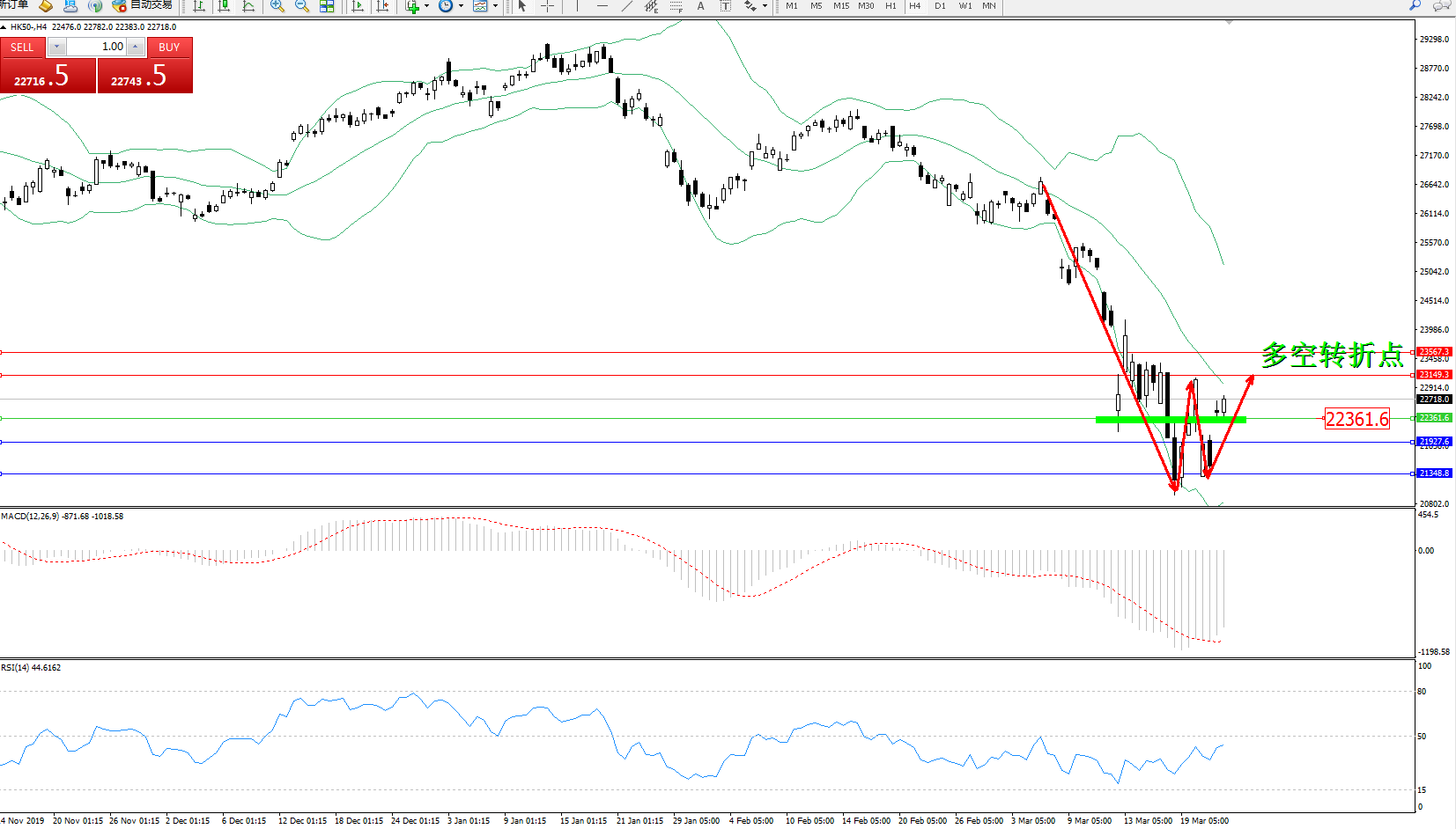 香港恒生指数3月24日(周二)收盘上涨967.36点,涨幅4.46%,报22663.49点;今日全球市场迎来大反弹,港A两地亦集体上涨,阶段触底反弹明显。港股主要股指全日大涨,恒指盘中升近5%,国指更是一度大涨5.5%。行业板块集体走高,市场抄底情绪上升,惟成交量能未能有效放大。主板成交量为1377.97亿港元,港股通大幅净流入102.81亿港元。市场憧憬各国出招救市,其中美国联储局推出「无限买债」计画,刺激道期早段升400点,美股指数期货逼近涨停板,美股科技股盘前大涨,市场预料资金将会持续调离美元及股票市场,因目前新冠肺炎疫症继续在全球扩散,且中美之间的「口水战」将持续展开,预料港股亦会跟随外围走势。