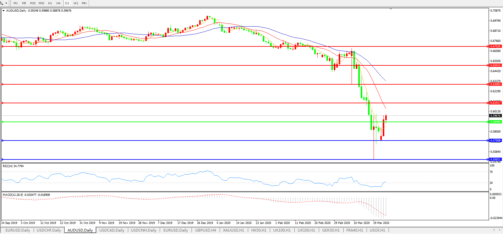 澳元兑美元AUDUSD 日线图: