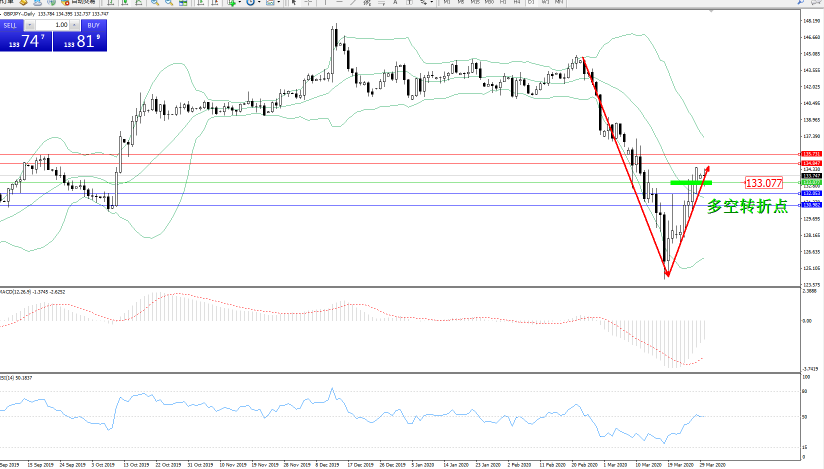 技术点评:空头动力延续布林带指标下轨不断下行后,呈V型反转走势良好,突破布林带止步中轨后持续上行中,且布林带指标呈收口走势中,低位多头动力有持续上扬态势,MACD指标处于空头区域缓慢震荡上扬中,RSI指标处于空头区域持续震荡上行至50均衡线附近徘徊;
