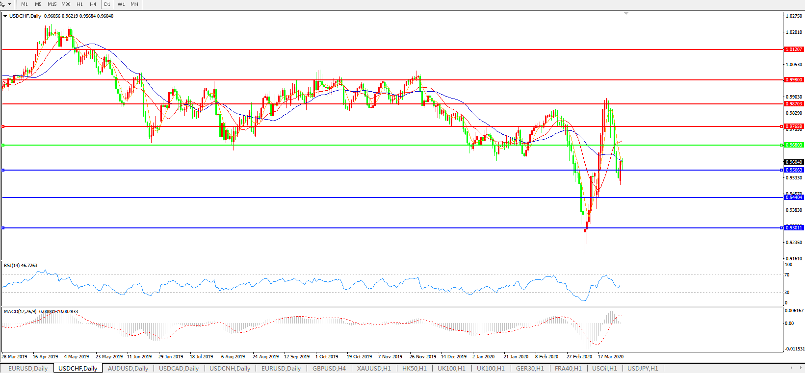 美元兑瑞郎USDCHF    日线图: